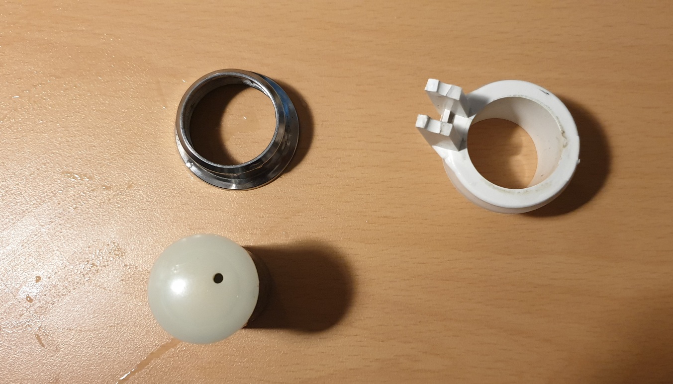 버튼, 버튼 홀더, 레버 홀더를 따로 떼어 늘어놓은 사진입니다. 겉에서 보면 간단해 보이지만 여러 부분으로 구성되어서 하나라도 깨지거나 제 위치에 없으면 작동을 하지 않네요. 볼 일을 본 뒤에 물이 내려가지 않으면 당황하기 쉽지요. 가장으로서 집안에 유일한 남자로서 이 문제를 해결해야 했습니다.